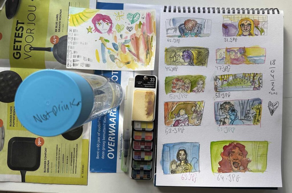 Ik had meegedaan aan Kunstbende en was 2e geworden. Bij mijn prijzenpakket kreeg ik een aquarelset, maar ik heb niet veel met dit materiaal gewerkt.